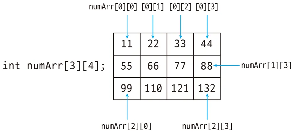 int arr[3][3]; // 3x3 int형 2차원 배열