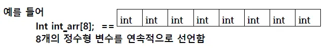 int int_arr[10]; // 10개의 int형 변수를 담을 수 있는 배열 선언