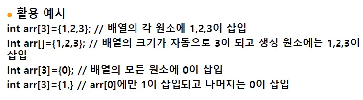 int arr[3]={0,0,0}; → arr[0]~arr[2]는 모두 0