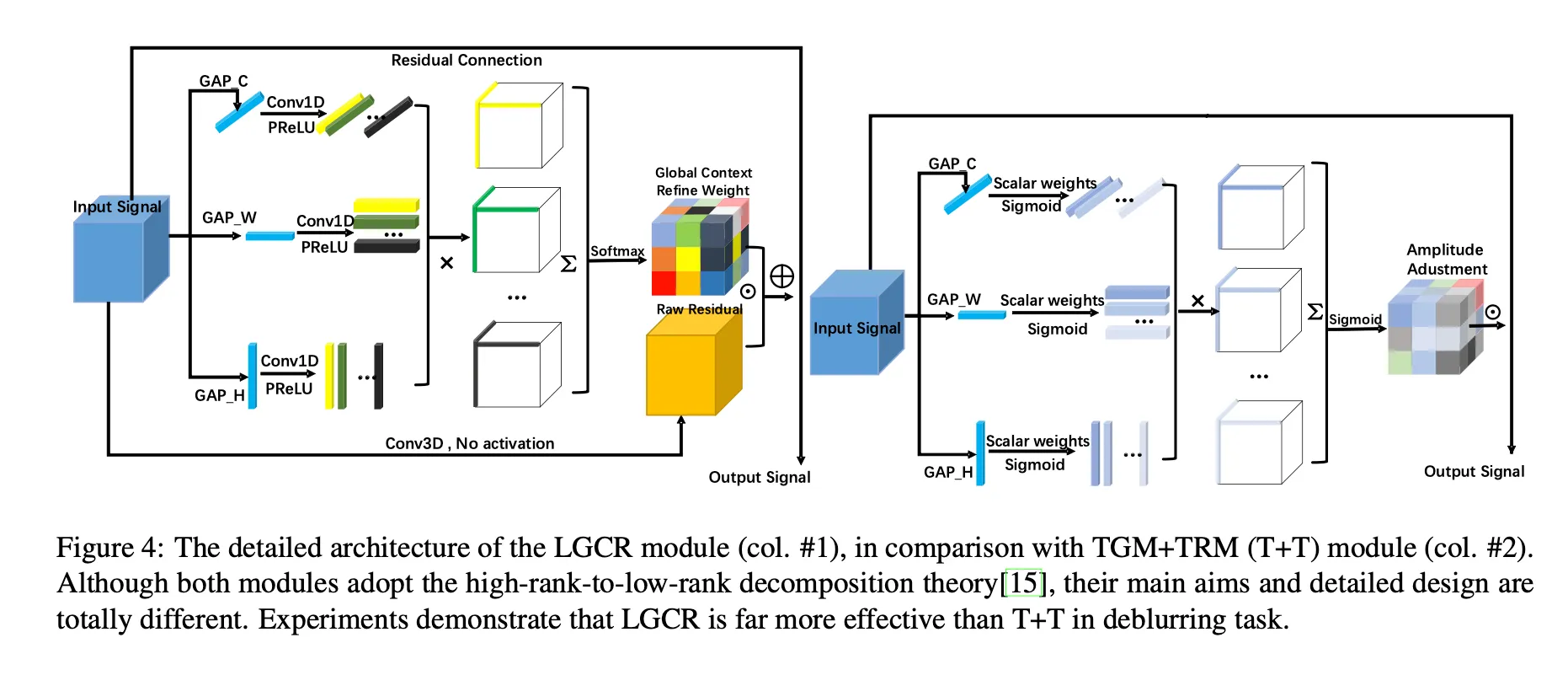 TGM + TRM ( T + T ): global information 을 계산하면서 high-rank difficulty를 tackling. 하지만 이는 high-level semantic reasoning에 좋지만 detail recovery에는 좋지 않다. 그리고 1-rank tensor의 non-linearity는 충분하지 않다. 즉, 1rank tensors의 global context는 잘 학습되고 활용되지 않는다
