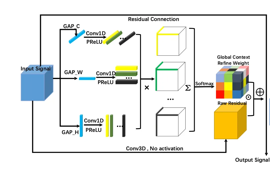 이를 input signal에 conv3D를 거친 Raw Residual 에 곱해주게 된다. 마지막에 input signal을 더해주는 residual connection도 주어진다.