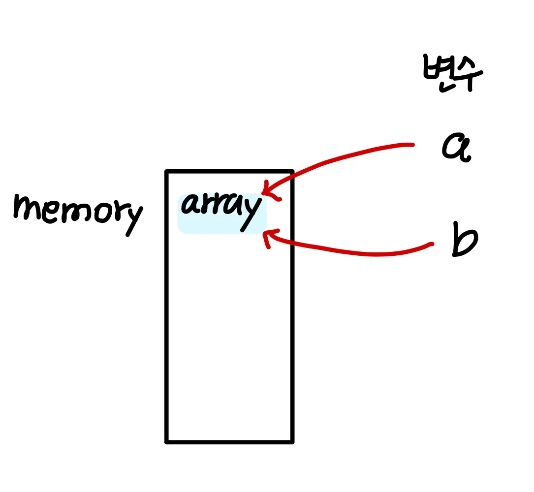 a라는 변수에 할당한 array의 모든 데이터와 속성을 공유한다