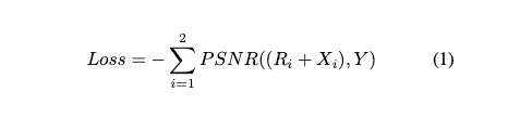 네트워크 아키텍쳐에 추가해 PSNR 을 loss function 의 metric으로 사용했고, PSNR Loss라 불렀다.