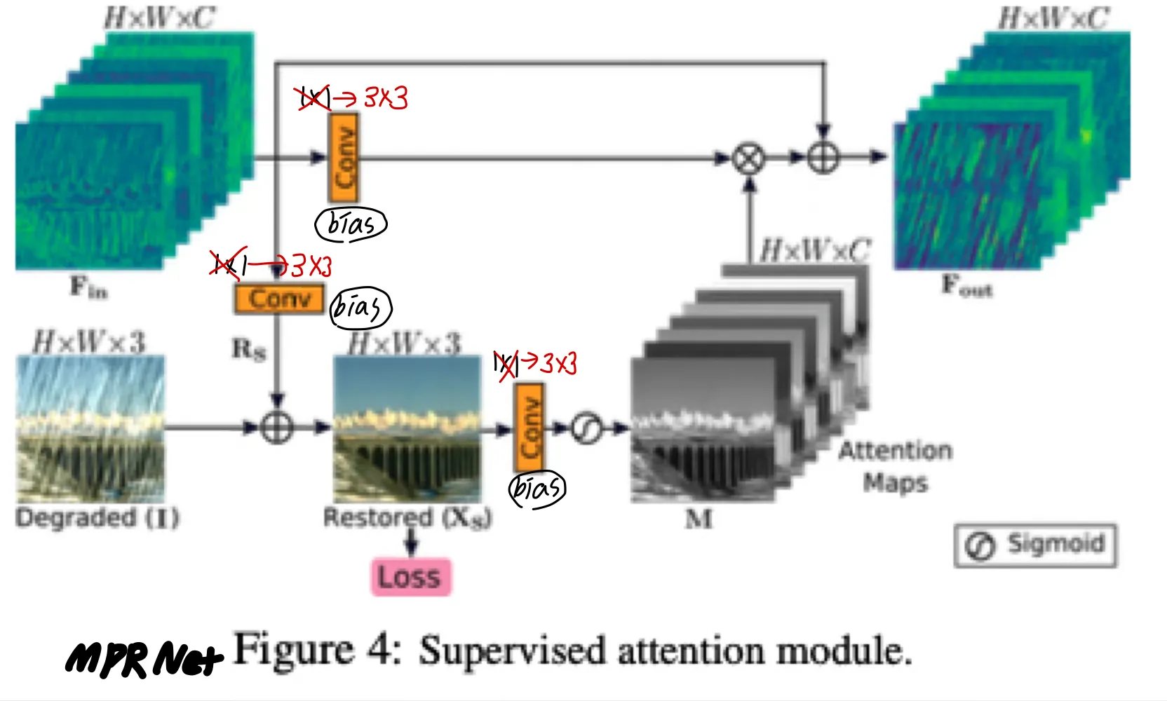 각 stage의 architecture에 더해, cross-stage feature fusion 을 더하고 supervised attention module을 두 스테이지 사이마다 더했다