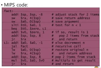store word(sw) 명령어로 $a0레지스터 값을 0($sp) 즉, 스택에 넣는다