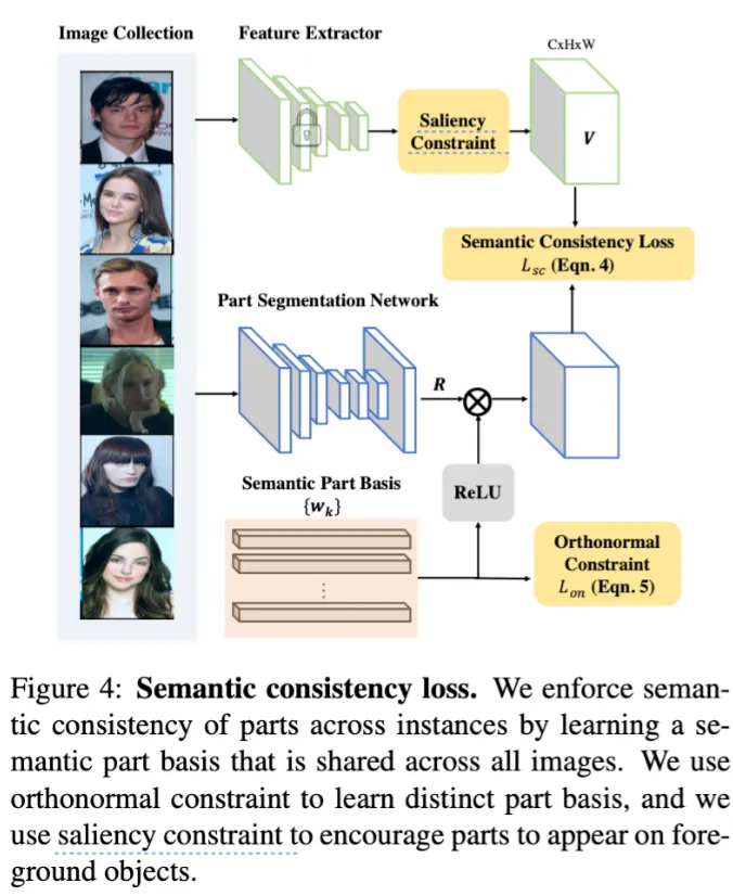 ⇒ 같은 part의 response는 pre-trained feature space에서 비슷한 semantic feature embedding을 갖도록 학습되게 때문에 instance간의 semantic consistency를 강제하게 된다.