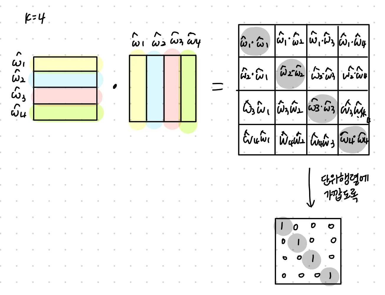 는 Frobenius norm(vector의 L2norm을 행렬로 확장)이며 는 KxK의 단위행렬(identity matrix)이다.