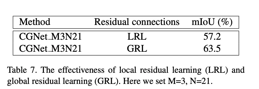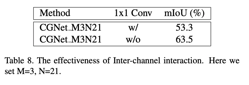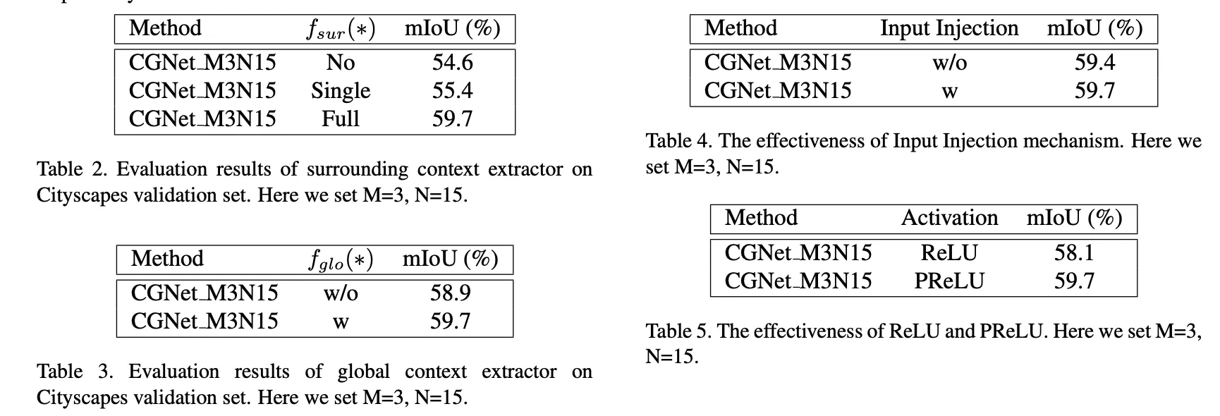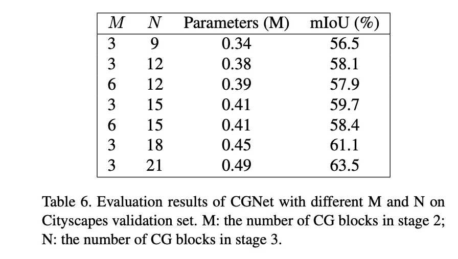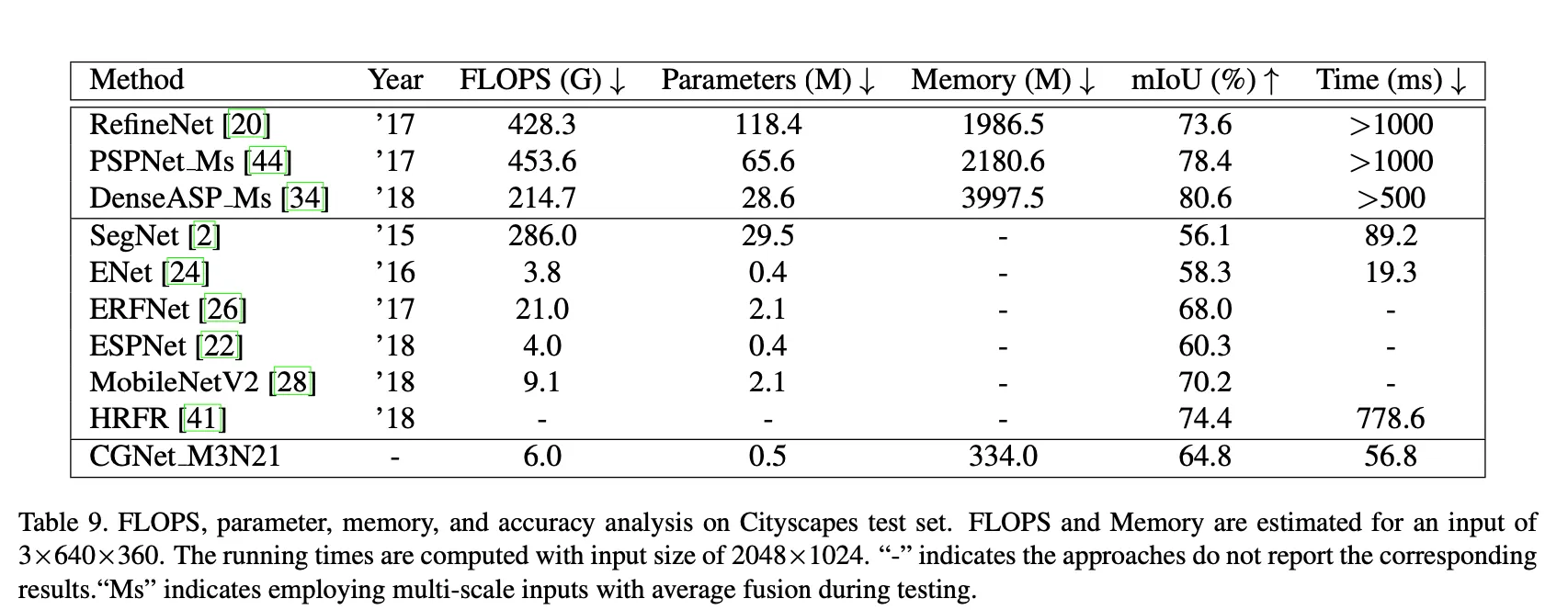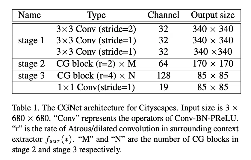 위의 표는 CityScapes를 위한 CGNet의 아키텍쳐이다.