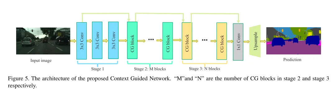 stage 3 : N개의 CGBlock을 쌓아 입력이미지의 1/8로 downsampling한 feature maps를 얻는다.