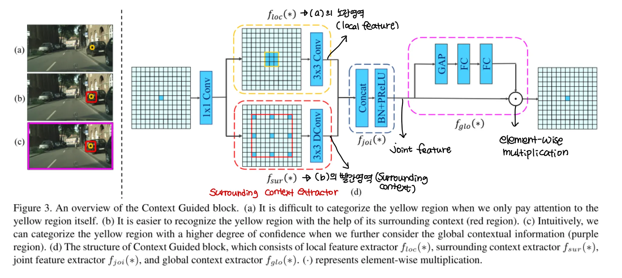 CGBlock : local feature와 local feature를 둘러싼 surrounding context를 학습. 더 나아가 global context와 관련된 feature도 사용하여 성능을 향상
