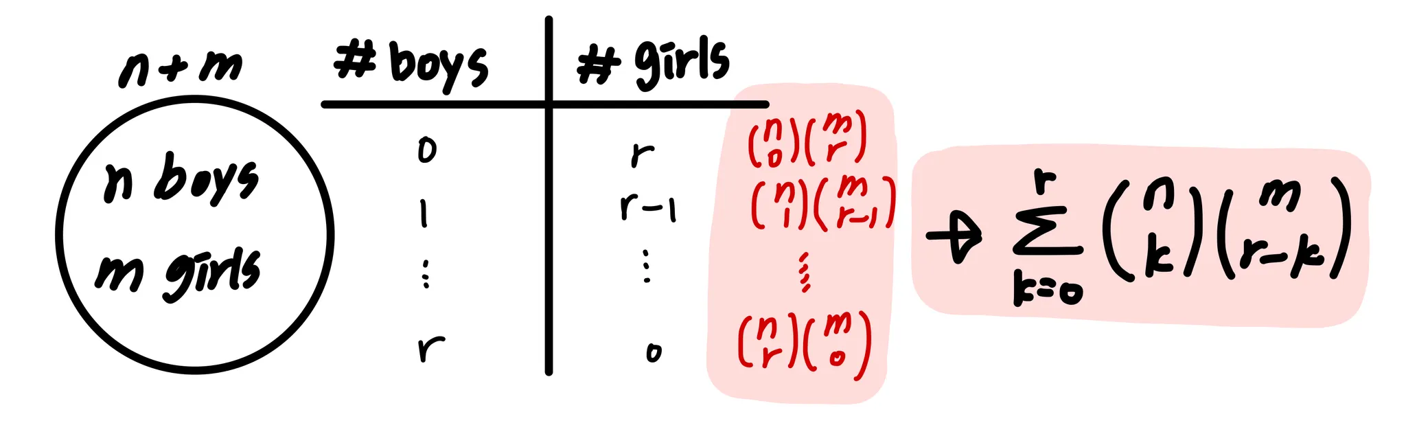 ex ) 남학생 n명 여학생 m명 중 r명을 뽑는 경우