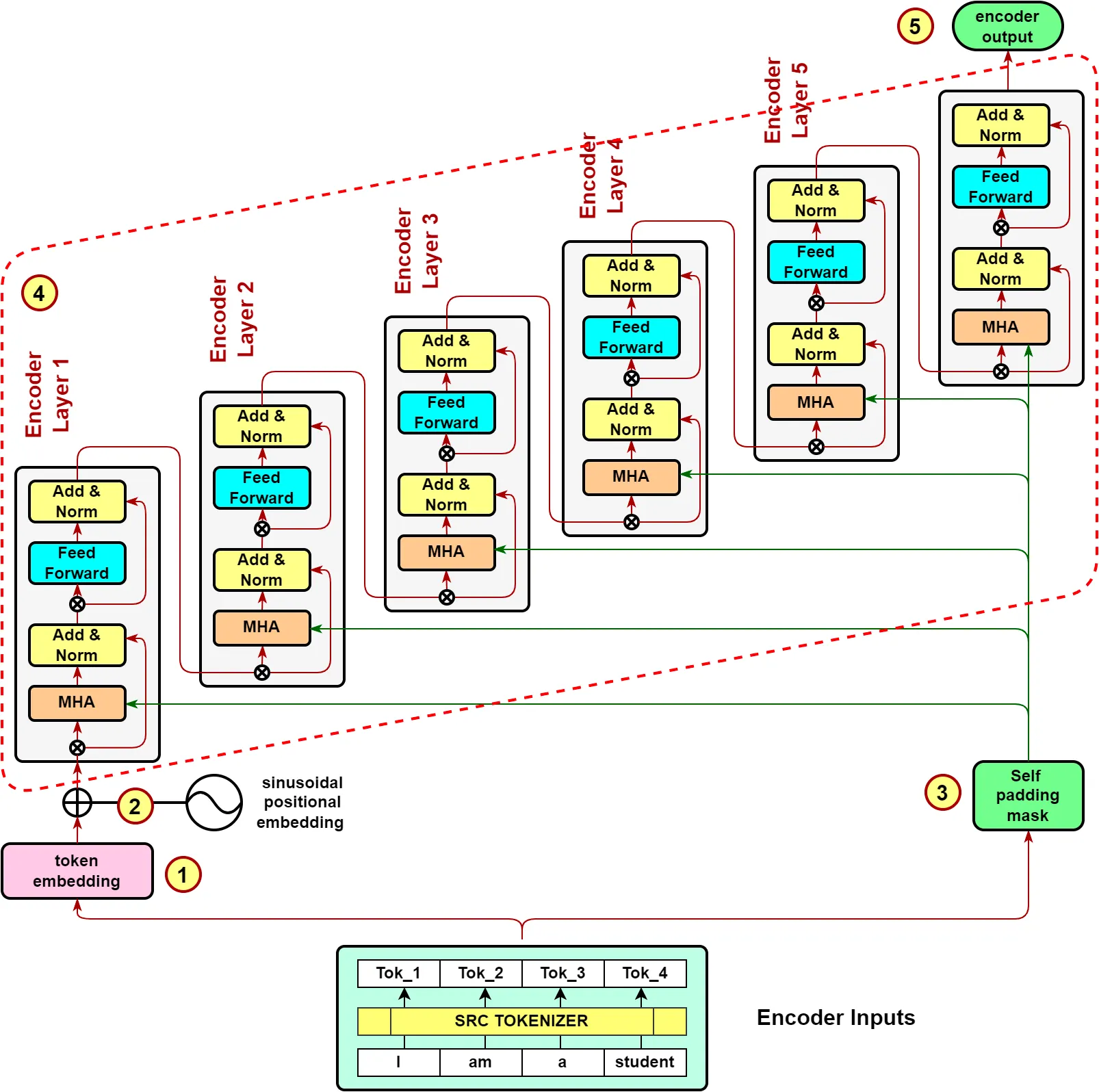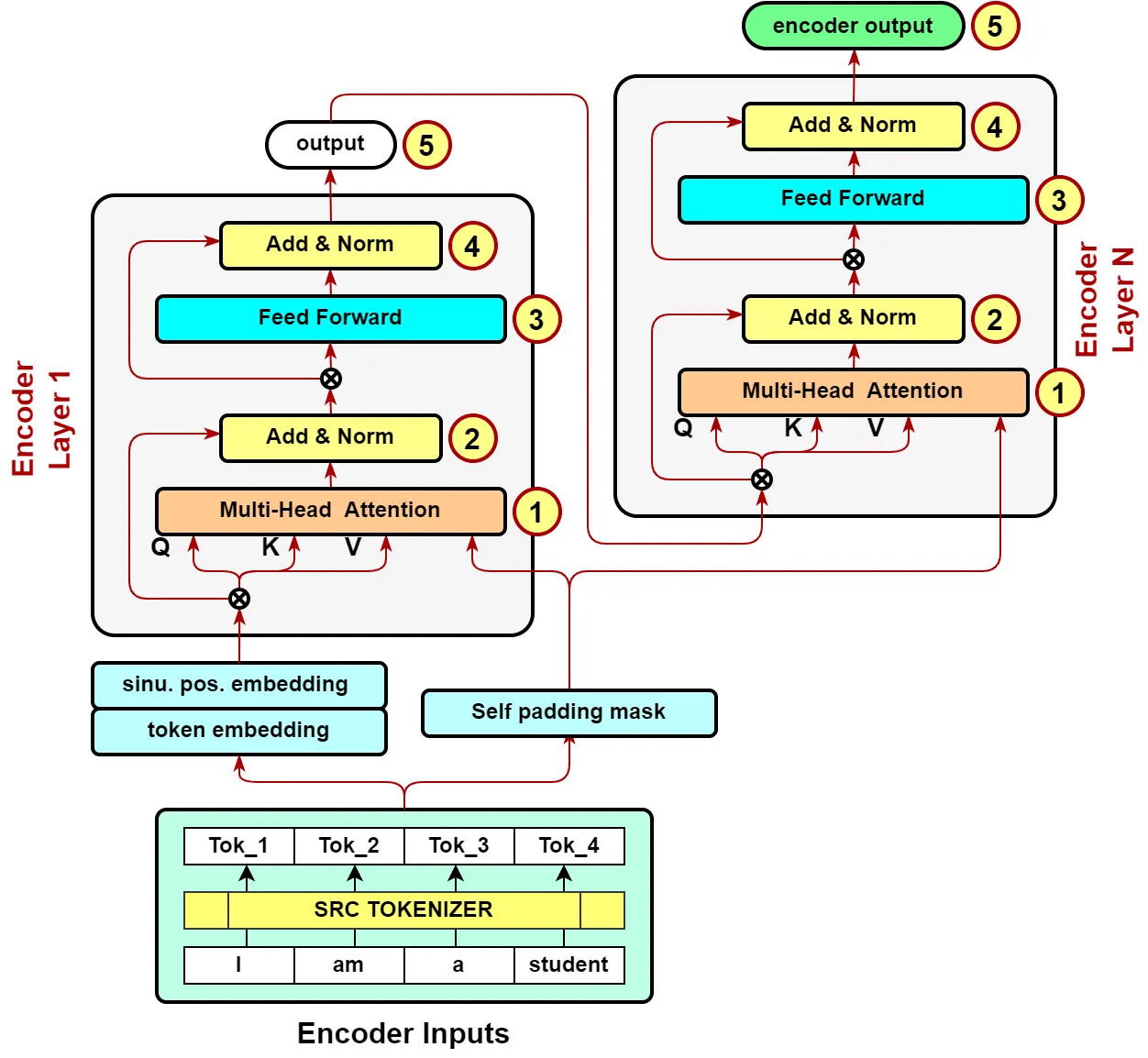 encoder layers 가 stack됨