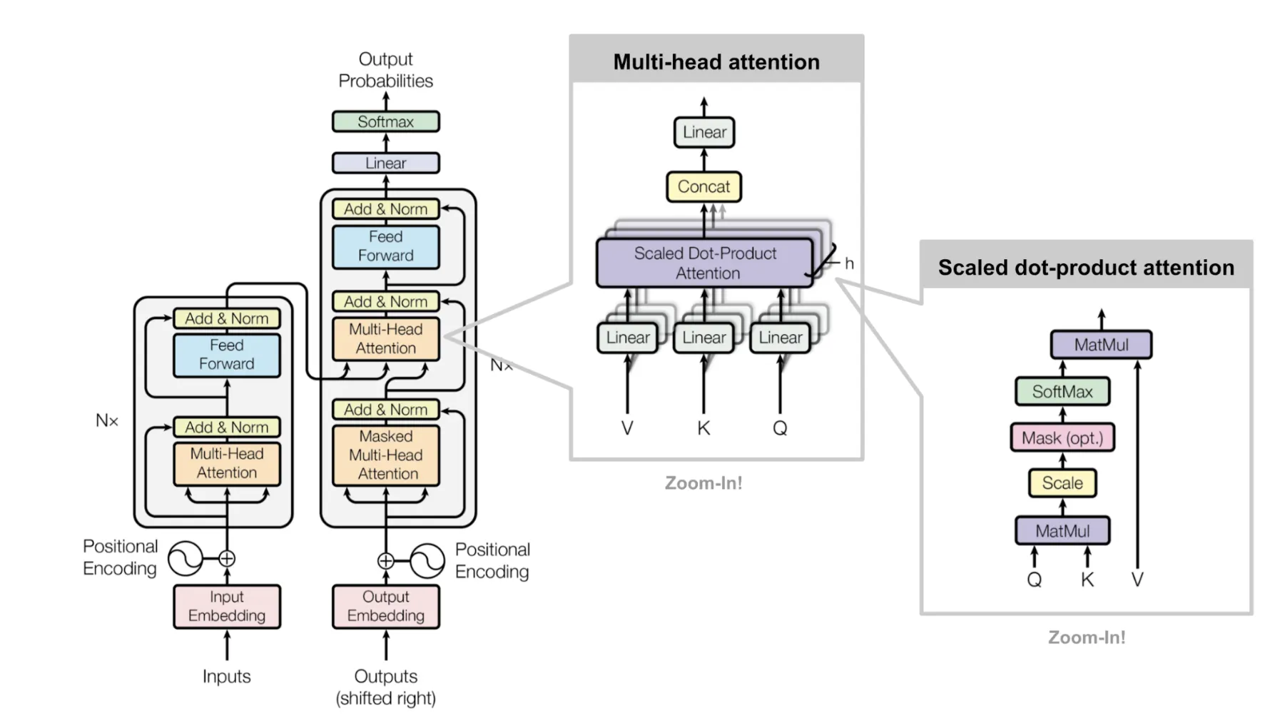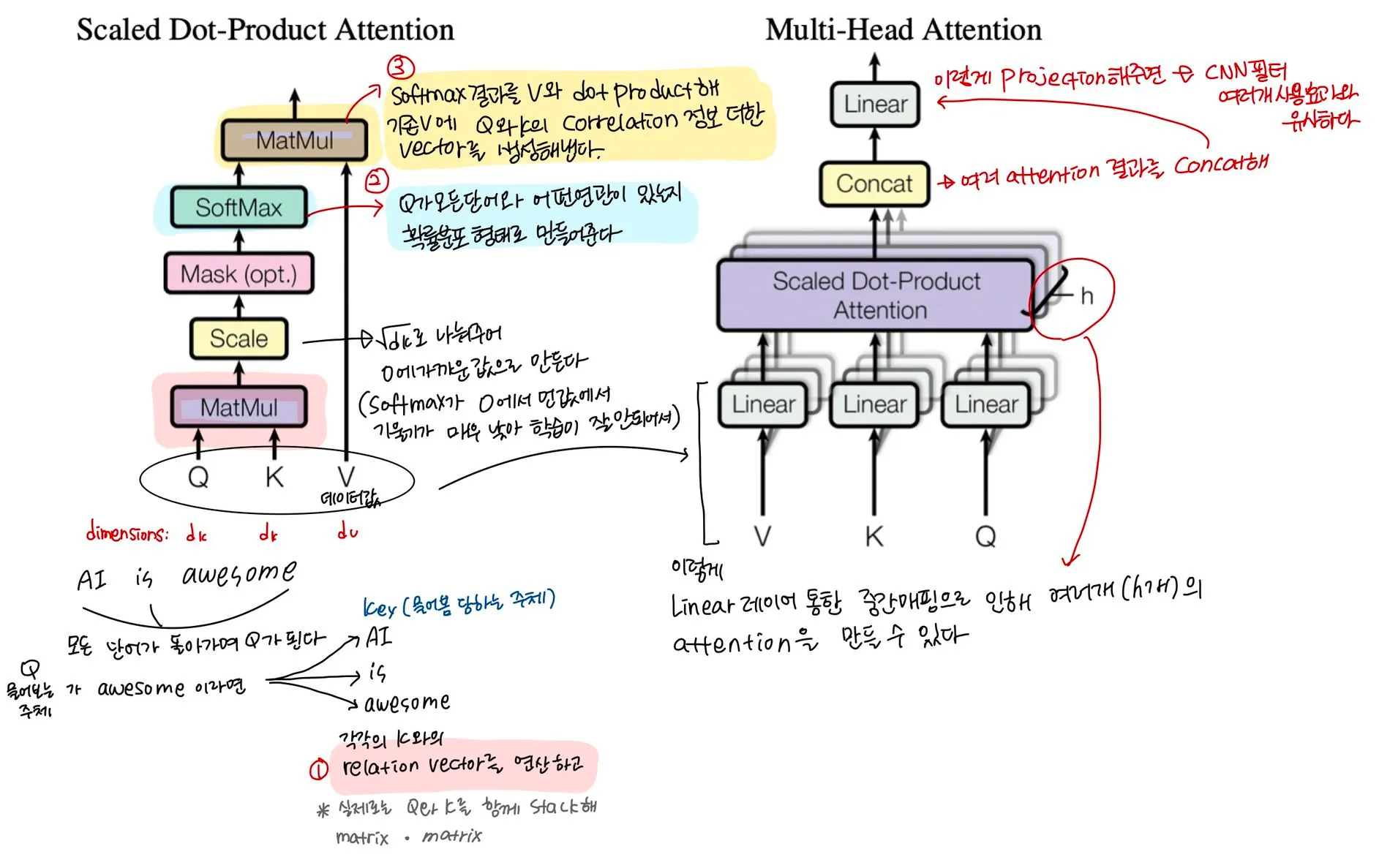 Multi-Head attention과 scaled dot-product attention은 다음 그림과 같다.