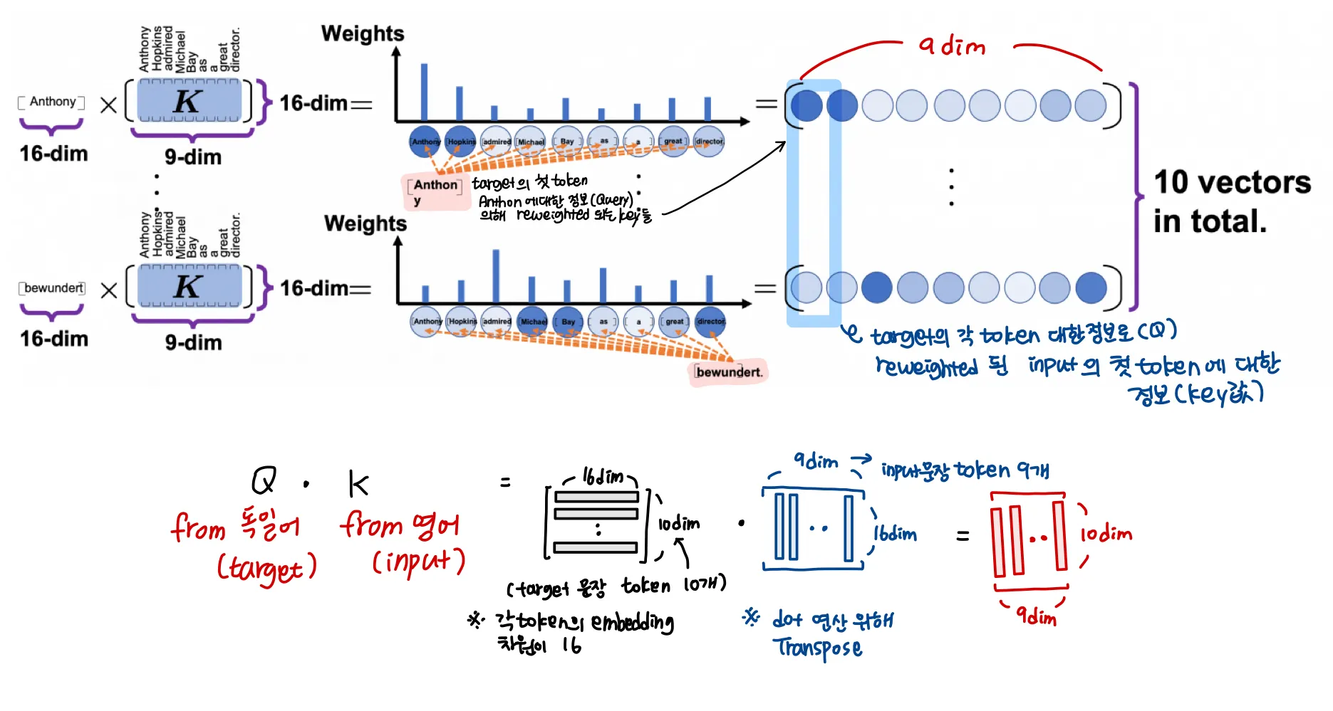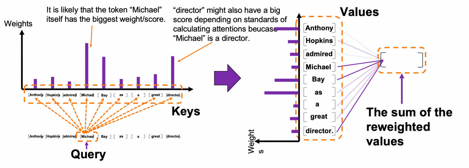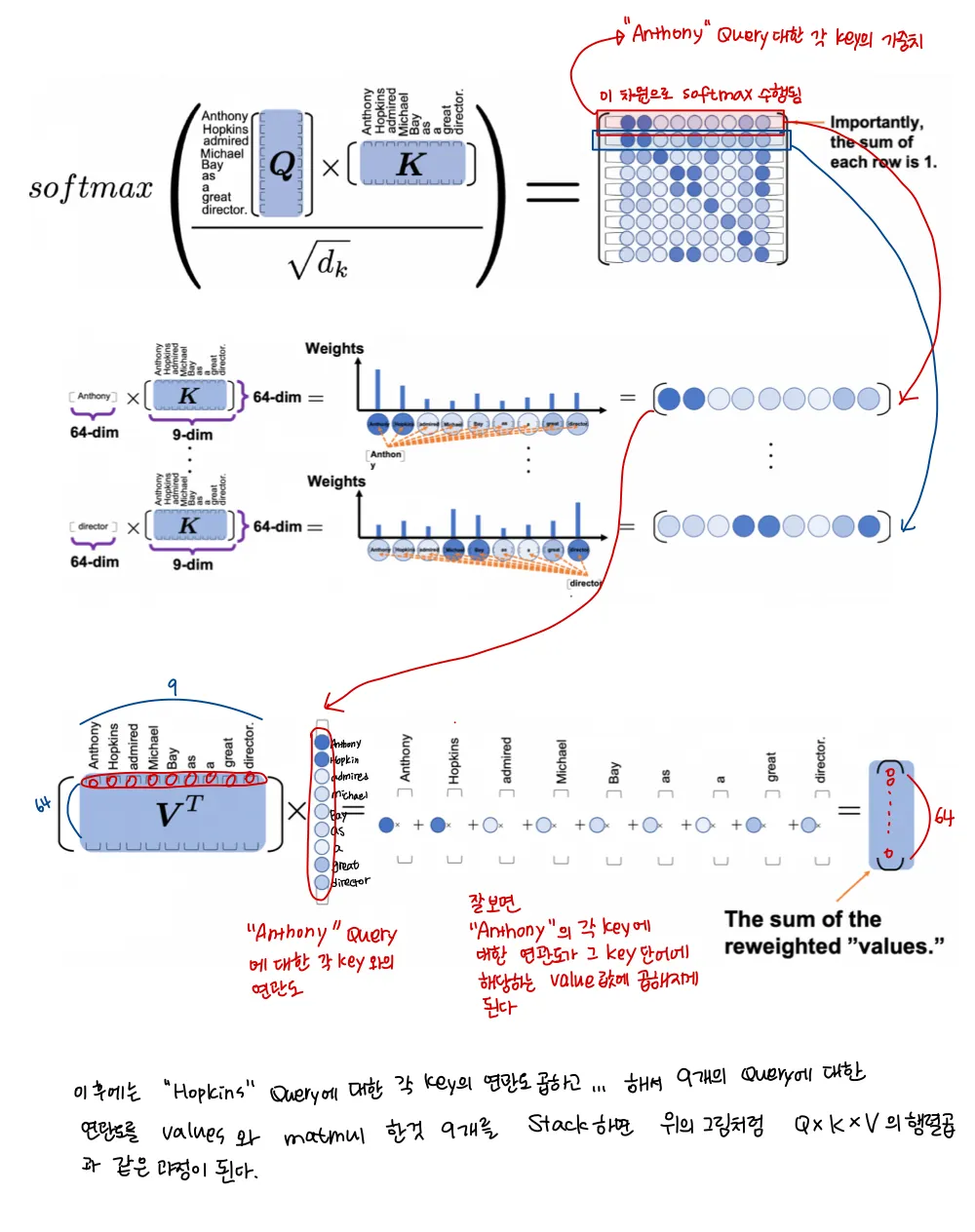 맨 위에서 "Anthony"를 query로 하여 각 key들에 대한 관련도를 구해 values를 rewight