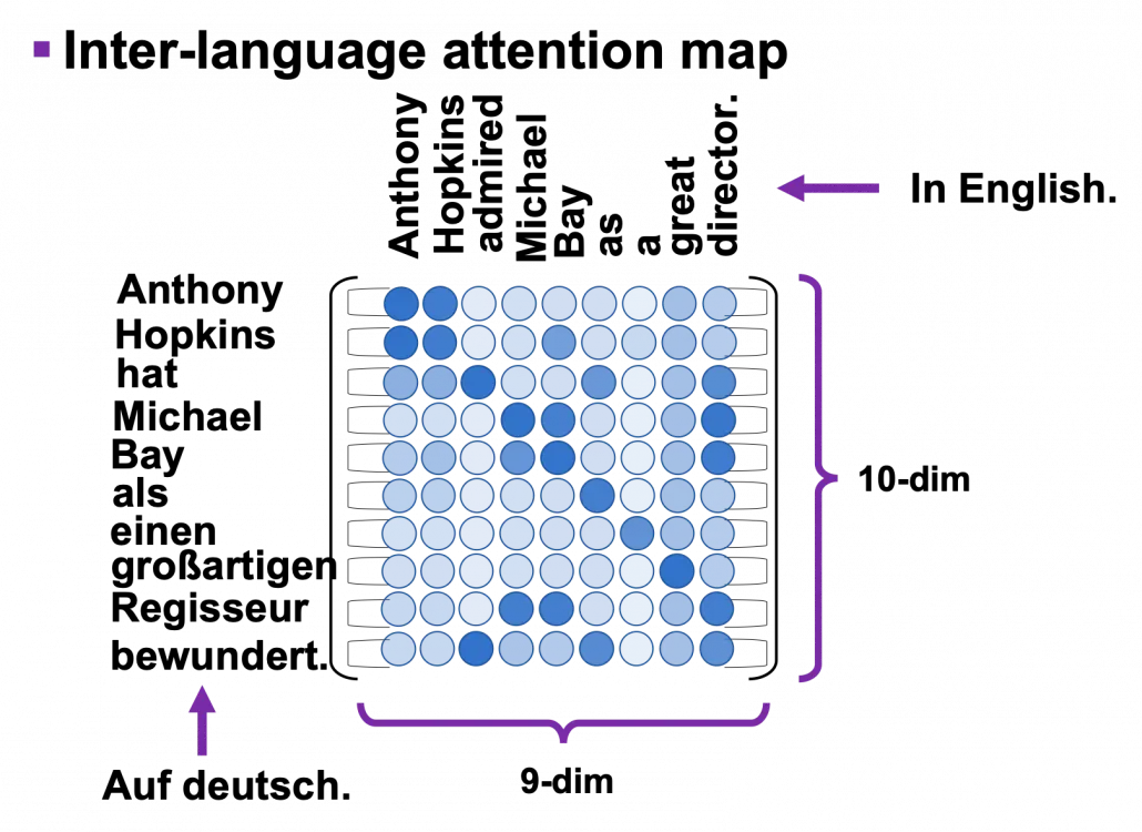 그림에 설명된 것처럼, input 문장인 영어 문장의 정보인 key값들이 target 문장인 독일어 문장의 정보값으로 reweighted되는 것을 볼 수 있다.