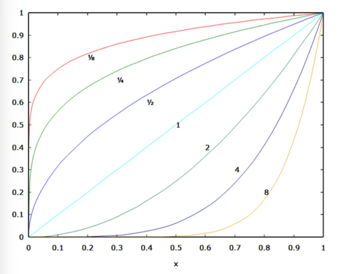 값이 1보다 커질 수록 아래로 볼록한 곡선이 된다.
