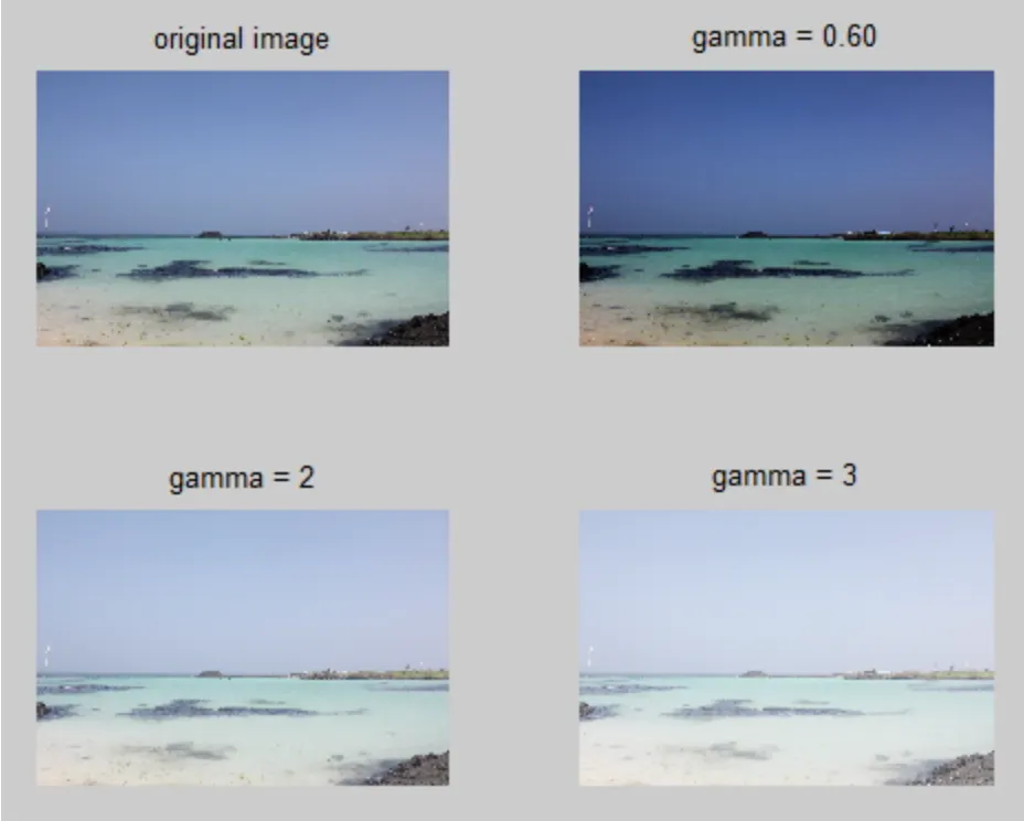픽셀값을 증가시키거나 감소시켜서 밝기를 밝고 어둡게 조정할 수 있지만 gamma correction은 이미지의 어두운 부분에 집중해 밝게하거나 어둡게 할 때 어두운 부분의 변화폭을 밝은 부분보다 크게 적용합니다
