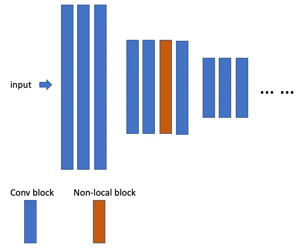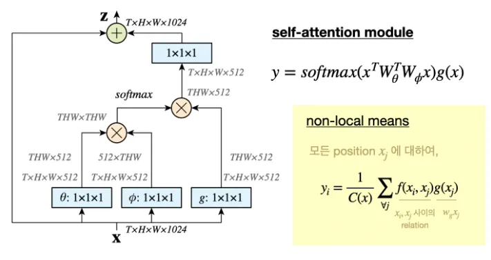 컴퓨터비전의 classical non-local means 방법에서 영감을 받아 이 논문의 non-local operation은 한 포지션에서 모든 포지션의 피쳐들의 가중합의 response를 계산
