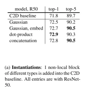 [49]와의 관계에도 불구하고 attention behavior (softmax때문에) 은 이 논문의 연구의 적용에 필수적이지는 않음을 보여준다 . 이를 보여주기 위해서 non local 연산의 두가지 대안을 보여준다
