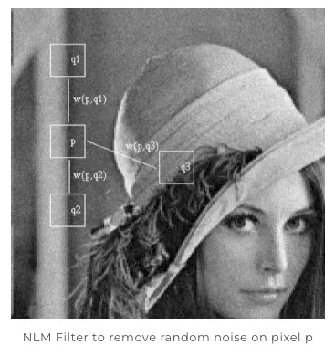 이를 극복하고자 NLM Filter는 한 장의 영상만을 가지고 기존의 노이즈 제거 방법과 같은 원리를 이용하여 노이즈를 제거합니다.