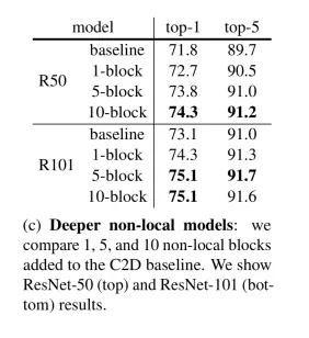 시간축을 제한적으로 볼 수 밖에 없었던 C2D모델에 non local block을 사용하면 더 좋은 성능을 낼 것임을 기대할 수 있었습니다