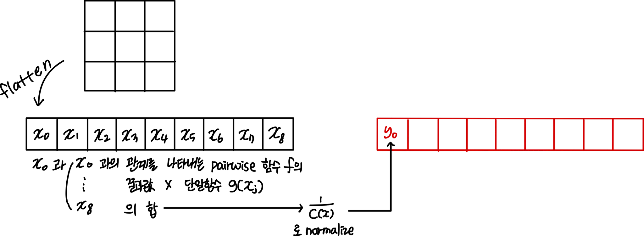 = pairwise function으로, i와 모든 j 사이 scalar값을 계산한다 ( affinity같은 relationship을 나타낸다 )