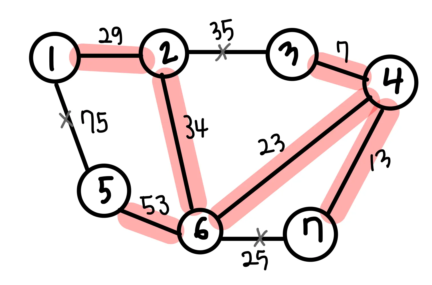 간선 | (3,4) | (4,7) | (4,6) | (6,7) | (1,2) | (2,6) | (2,3) | (5,6) | (1,5) |