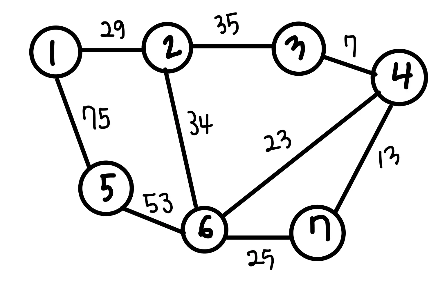 간선 | (1,2) | (1,5) | (2,3) | (2,6) | (3,4) | (4,6) | (4,7) | (5,6) | (6,7) |