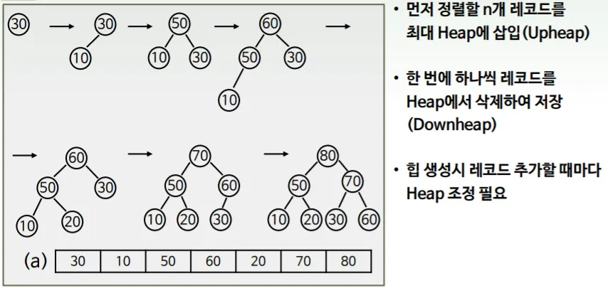 힙 정렬에서는 배열을 힙 구조로 재구성하는 makeheap()연산이 필요합니당