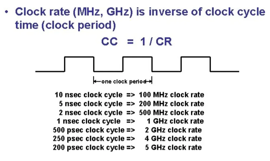 clock rate (Hz) = 1 ÷ clock cycle time(clock period)