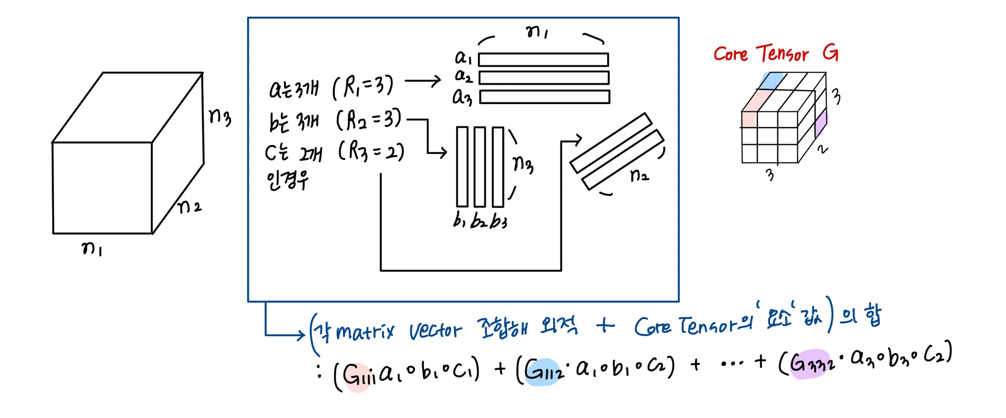CP Decomposition과 달리 a vector / b vector / c vector의 개수가 모두 다를 수 있다.