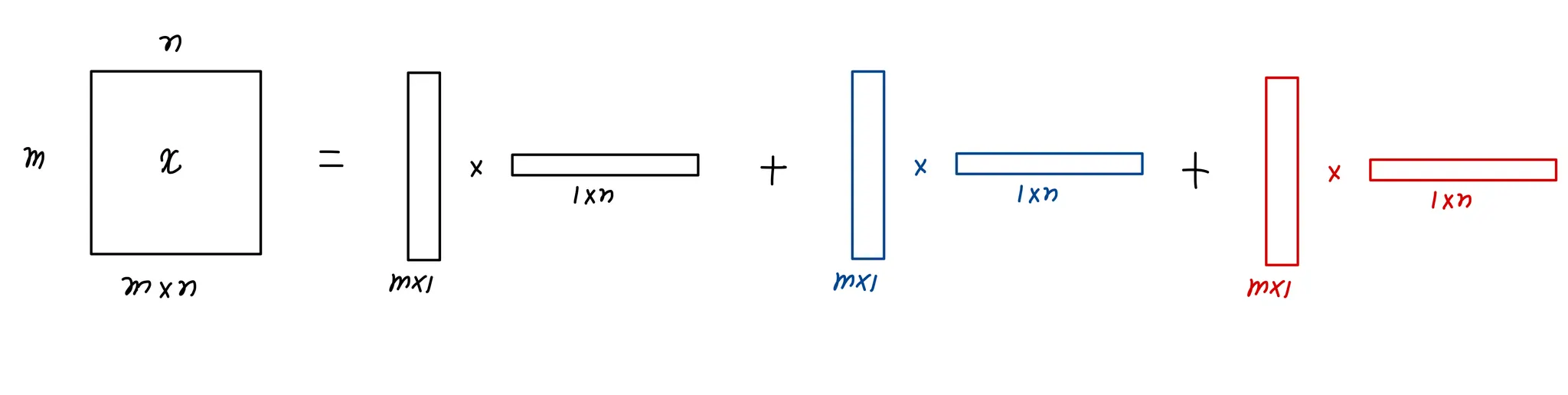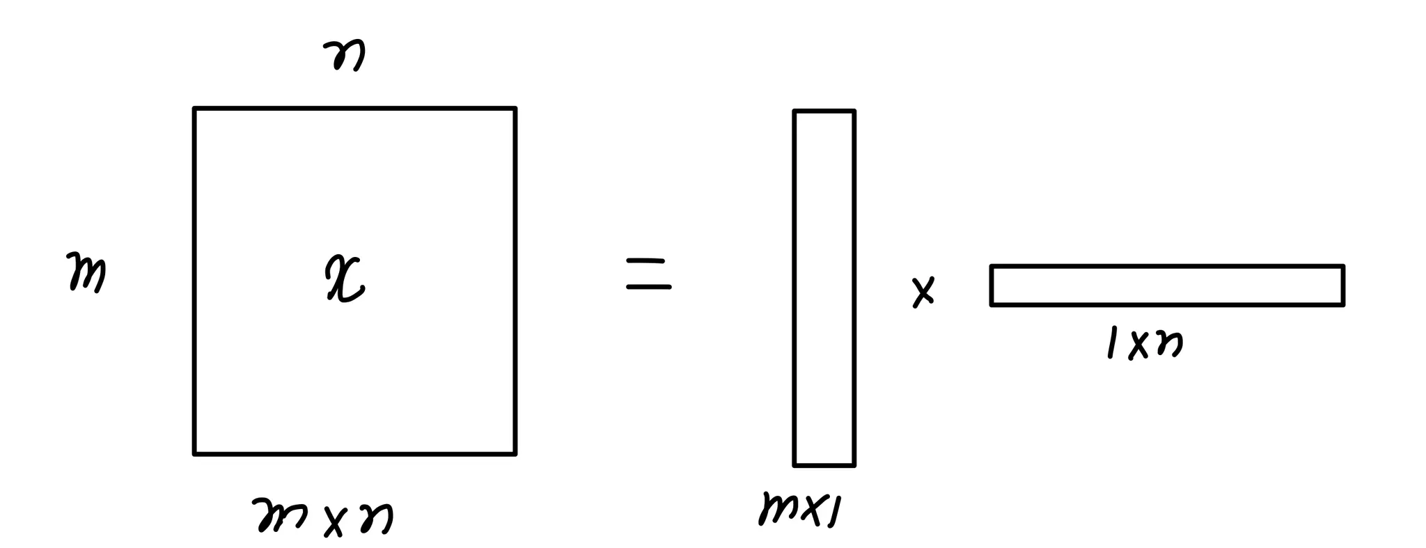 (mxn)크기의 x 행렬은 (mx1)크기의 행렬과 (1xn)크기의 행렬의 곱으로 나타낼 수 있다