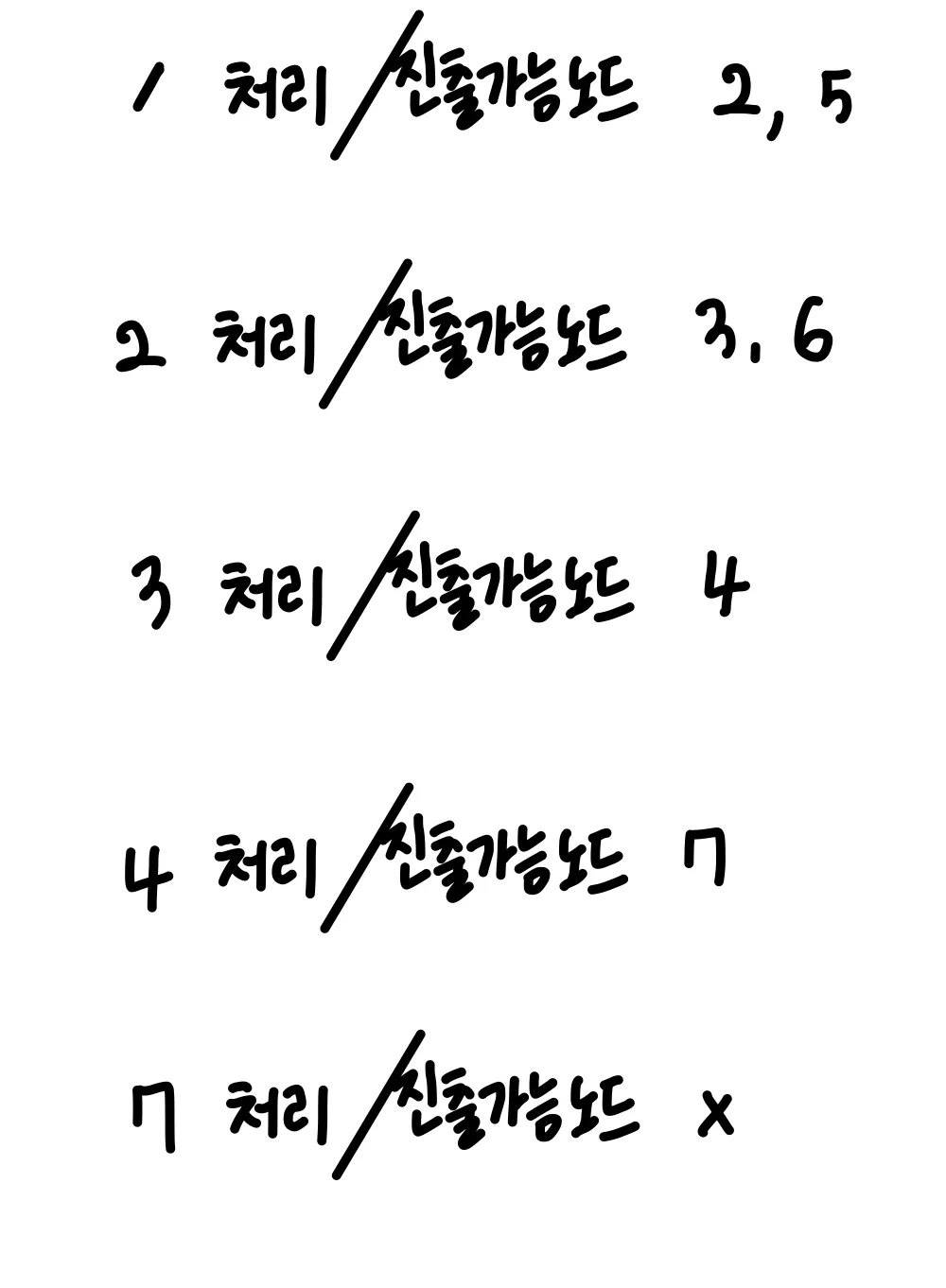 진입차수 | 0 | 0 | 0 | 2 | 0 | 1 | 1 |