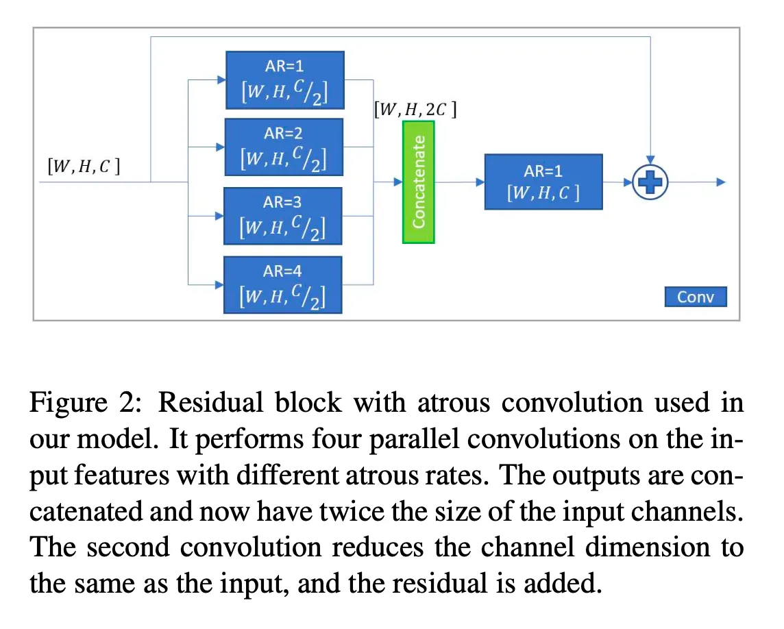 총 20개의 proposed atous residual block → 반복적으로 receptive field의 크기 늘림