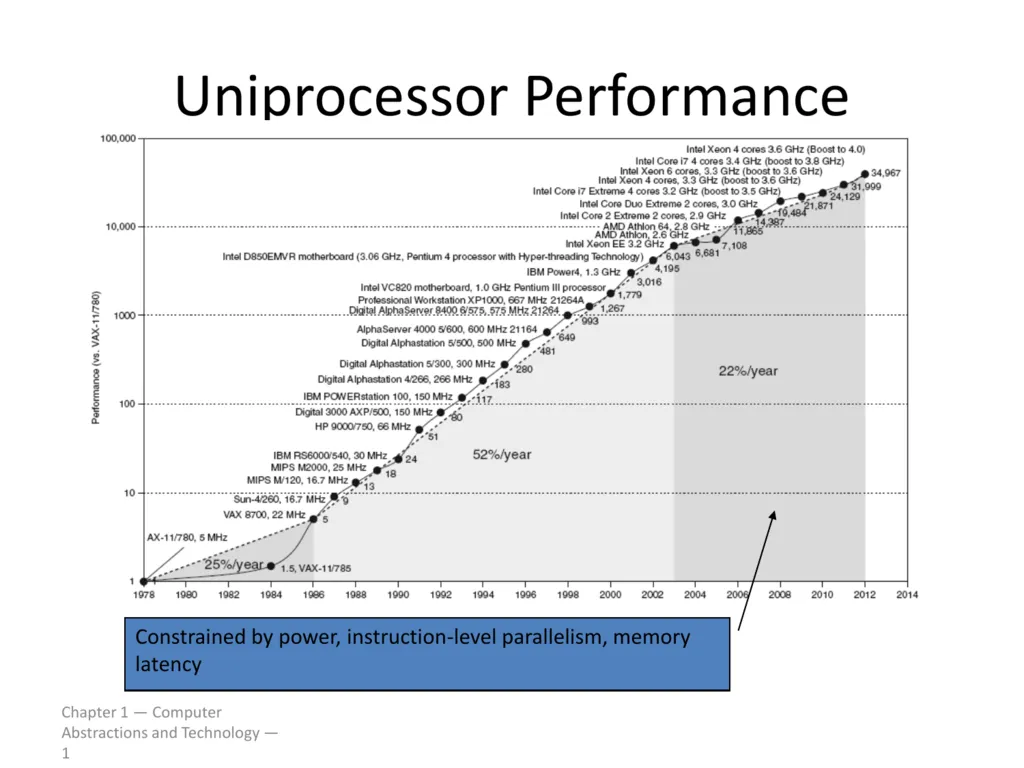 2003-2012 : 1년에 약 22% 증가 - 성장 줄어듬 ⇒ Power, Instruction-level parallelism, memory latency 등 의해 제한을 받았기 때문