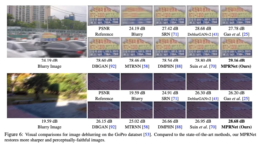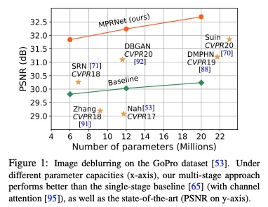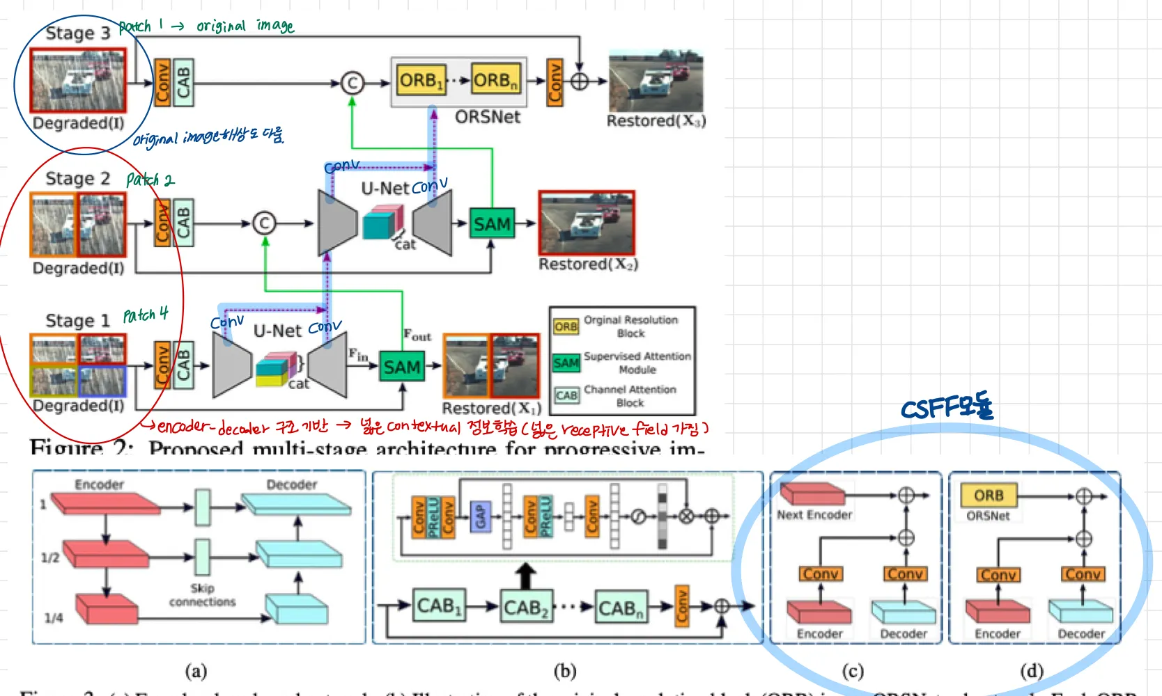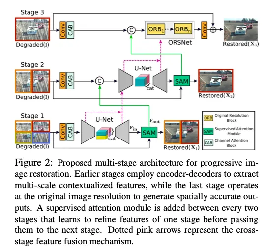 MPRNet이라는 multi stage progressive image restoration 아키텍쳐를 제안하며, 여러 key 요소들을 갖고있다.