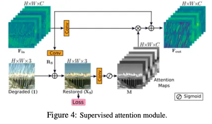 효과적인 supervised attention module이 모든 단계에서 incoming features를 더 전파하기 전에 개선하는데에 restored image를 최대한으로 활용한다.