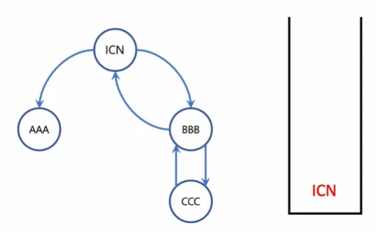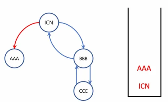CCC에선 BBB로 이동할 수 있고, BBB에선 ICN으로, ICN에선 AAA로 이동할 수 있으므로