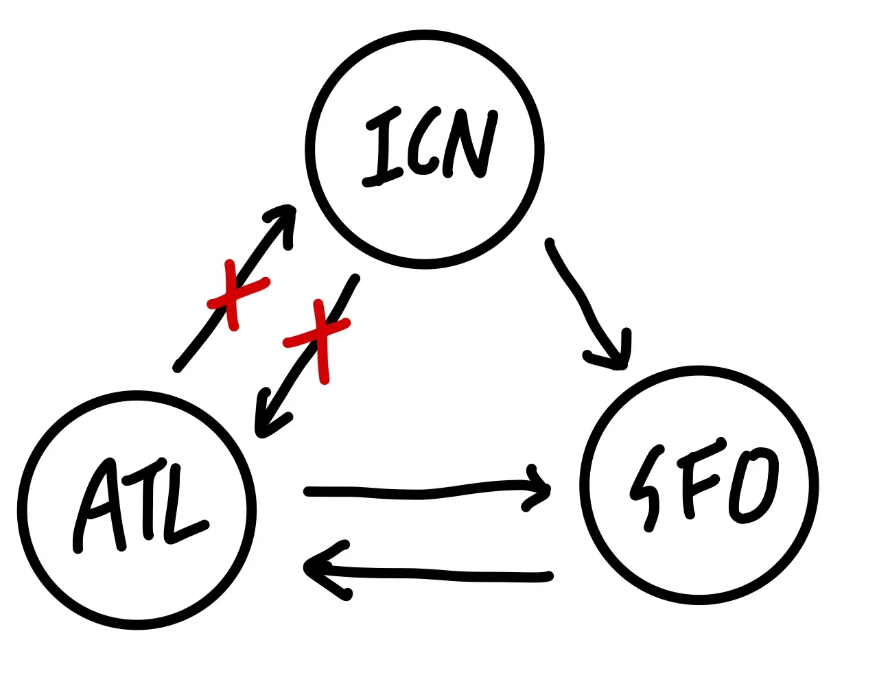 공항들이 node이고 항공권이 edge의 방향을 알려주는 방향그래프를 그릴 수 있겠군요