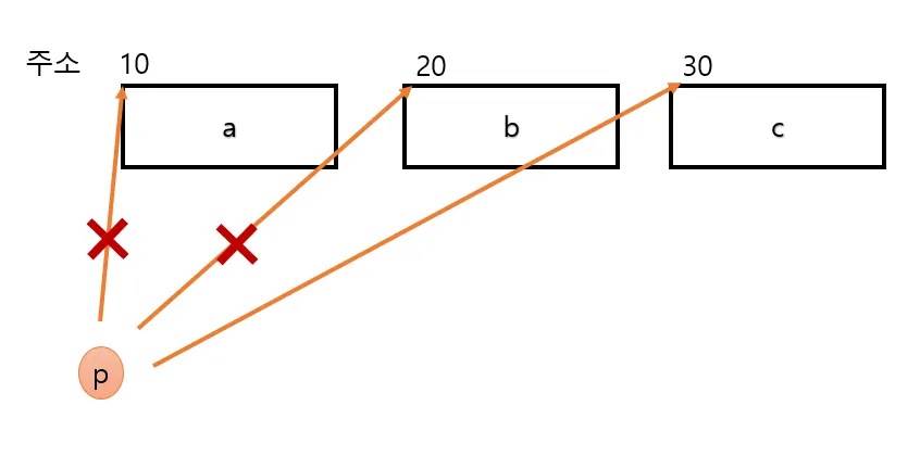 p = &a; // 포인터변수 p 는 a의 주소값을 저장