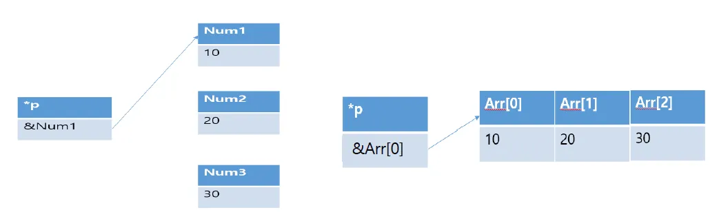포인터변수p에 num1변수에 대한 주소 값이 저장된다면, num2, num3에 접근할 방법이 없다