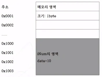 코드 실행시 컴퓨터 내부에서는 iNum이라는 변수값을 저장하기 위해 변수의 type을 확인 → int
