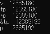 v의 주소값을 tp가 가지고 있고 *p는 tp가 가리키는 곳의 주소를 갖게되어 v의 주소값을 갖음