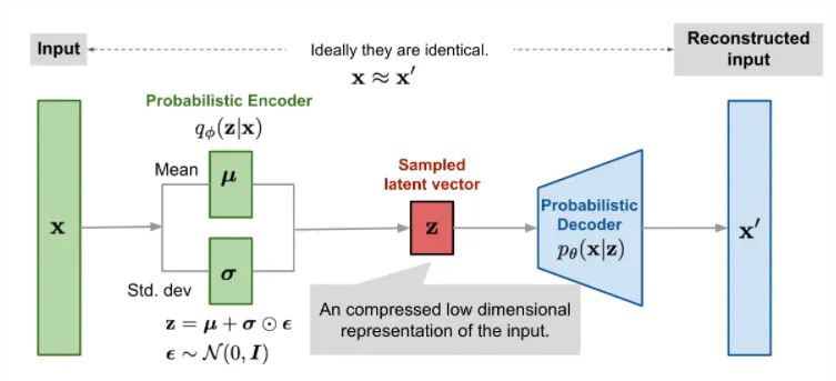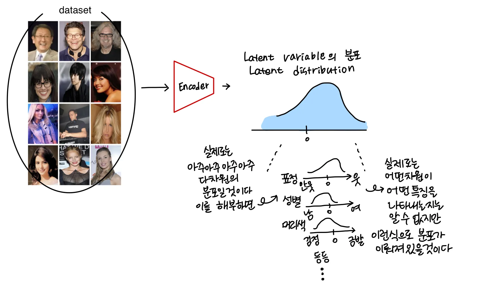 입력을 복원하는 AE와 달리 VAE는 데이터를 “생성”해야하기 때문에 데이터셋의 분포 그 자체를 학습해야 한다.