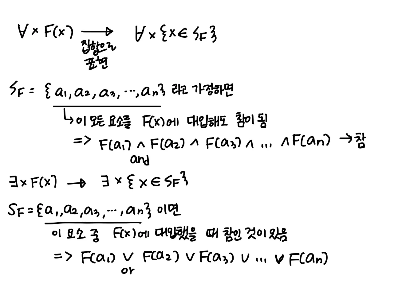술어와 집합은 등가교환이 가능 = 술어를 집합으로 생각할 수 있음 = 집합을 술어로 생각할 수 있음