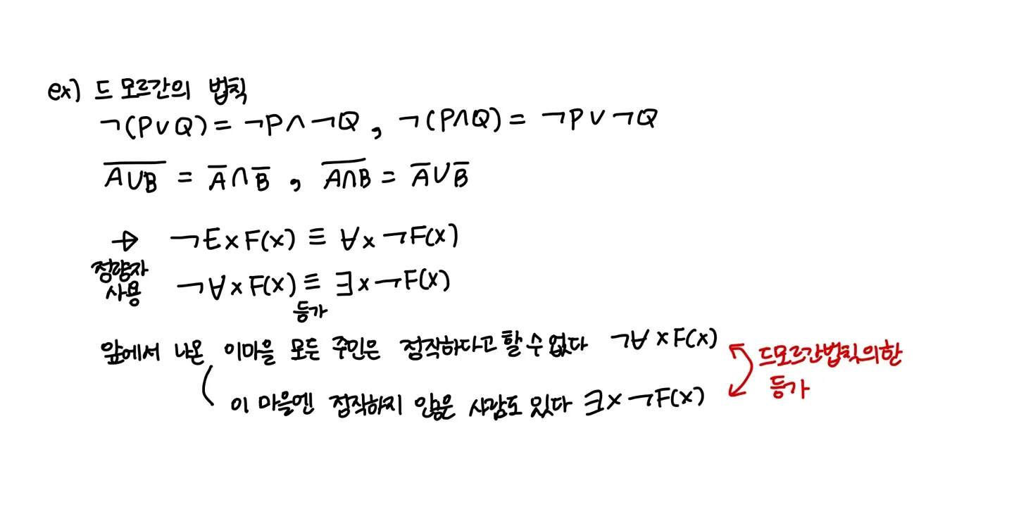 ex) 이 마을의 모든 주민이 정직하다고 할 수 없다. → 어떤 논리식?