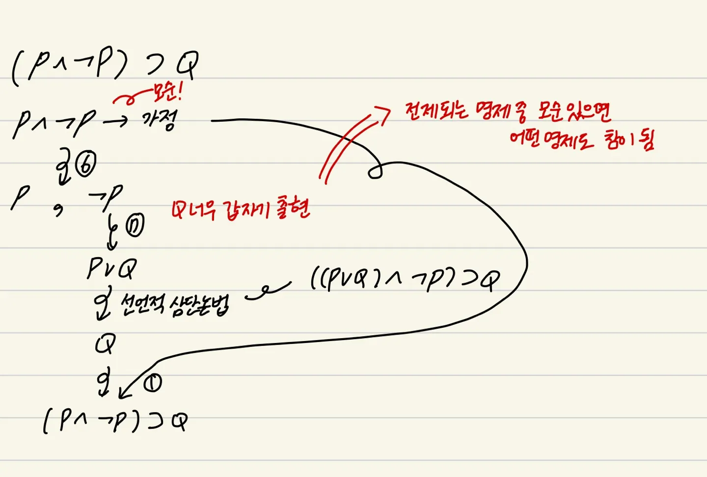 ⇒ 공리계 자체에 모순이 있는 경우에도 마찬가지.