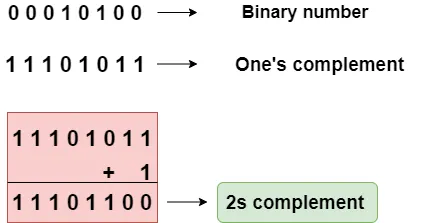 +2 : 0000 .... 0010, -2 : 1111 .... 1110