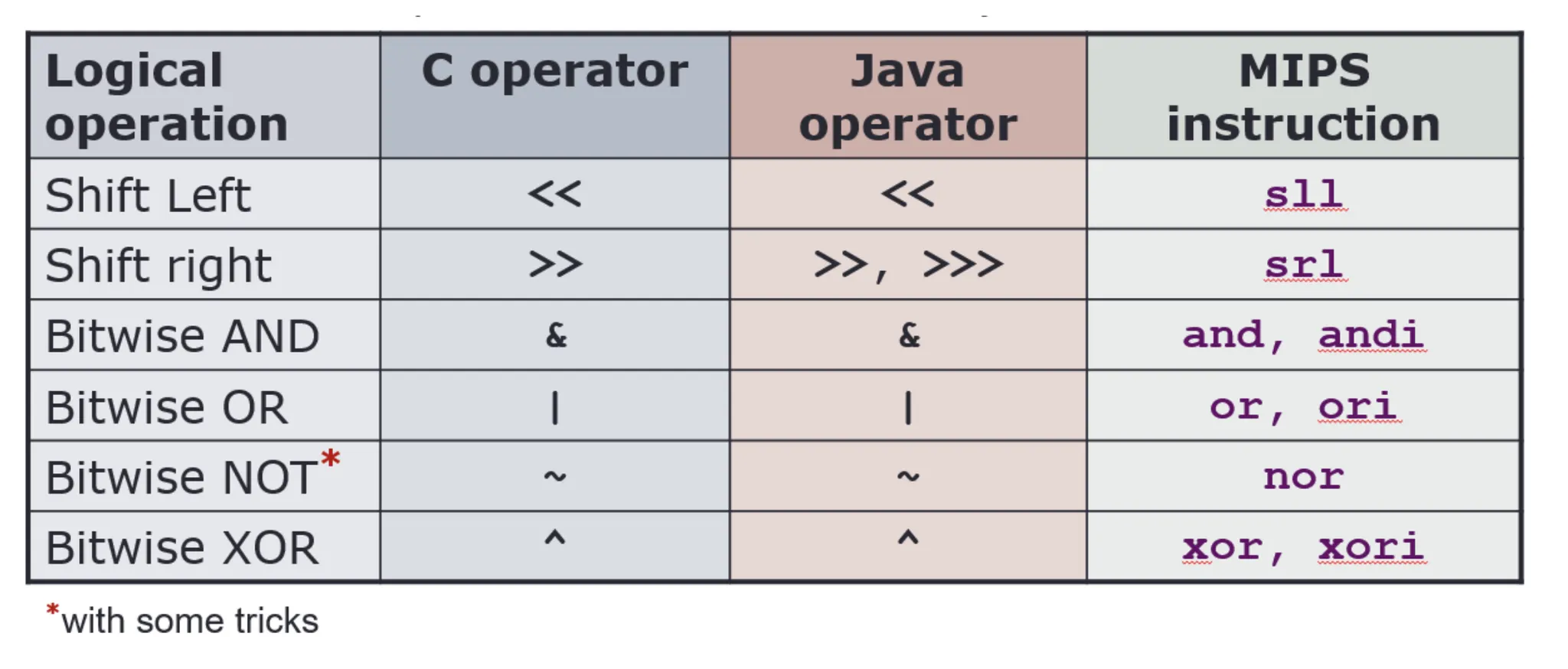 MIPS에선 NOT operation을 지원하지 않지만 NOR operation을 이용하여 NOT을 구현한다.