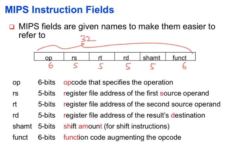 rt : destination or source register number (예) load명령어라면 destination이고 store명령어라면 source가 될 것이다.